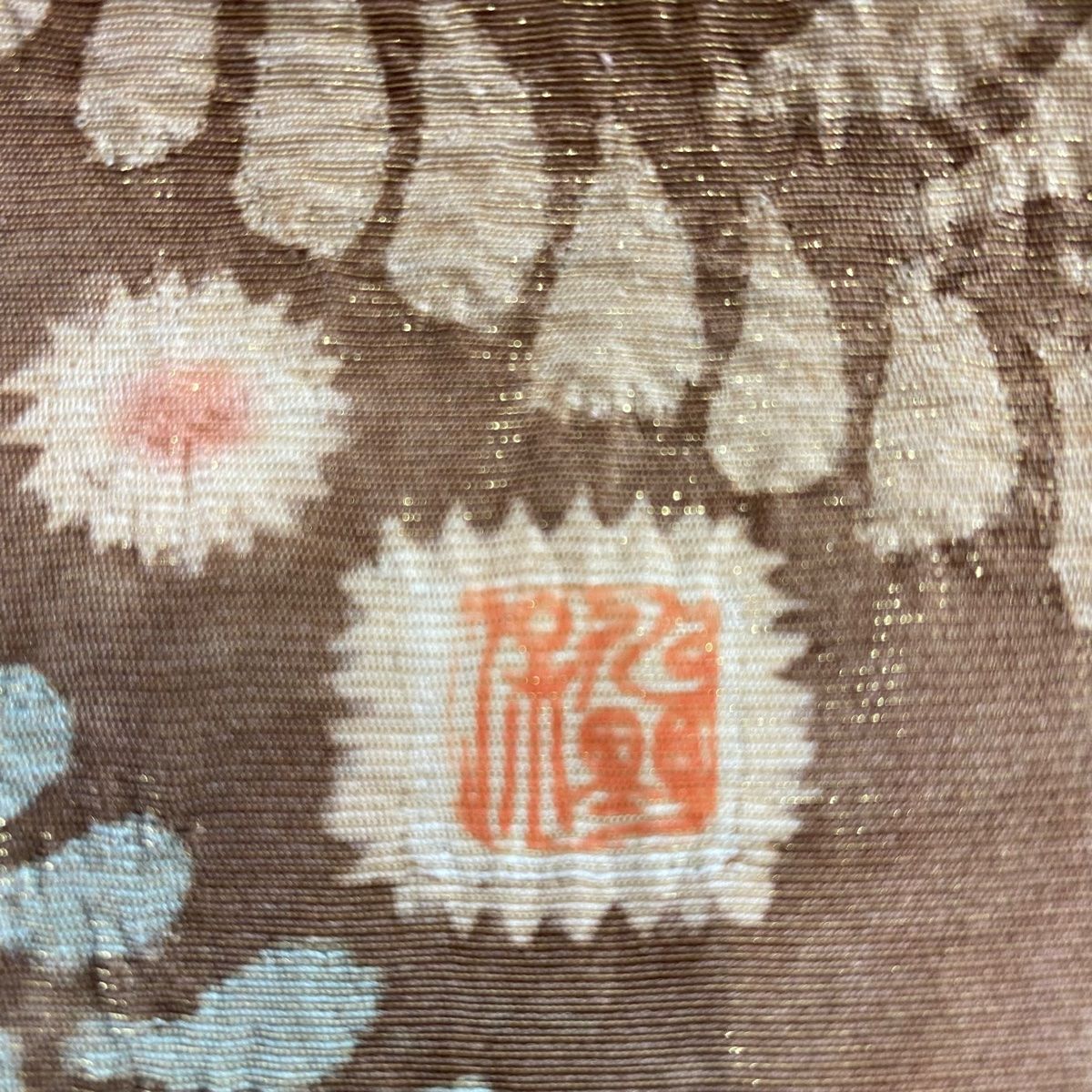 開き名古屋帯 秀品 落款 辻が花柄 金通し 茶色 正絹