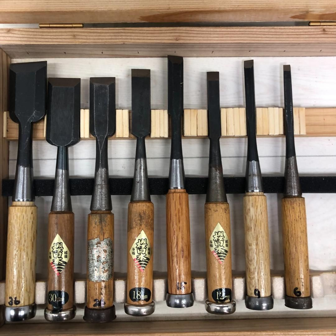 丸一鑿の8本セット(36・30・24・18・15・12・9・6mm)です。