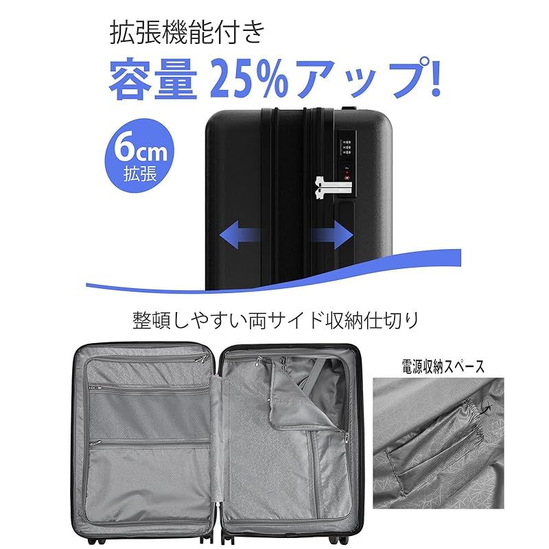 【拡張可能・大容量タイプ】マチ幅を6cm拡張するだけで容量が25%UPできる。旅先でお土産が増えても安心です。※拡張時は機内持ち込み不可。