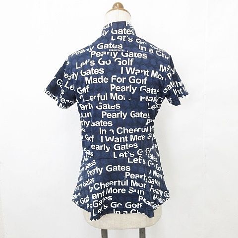 パーリーゲイツ PEARLY GATES ゴルフ スポーツウエア シャツ 半袖 ハイネック モックネック モデル 総柄 ロゴ 紺 白 ネイビー ホワイト 1