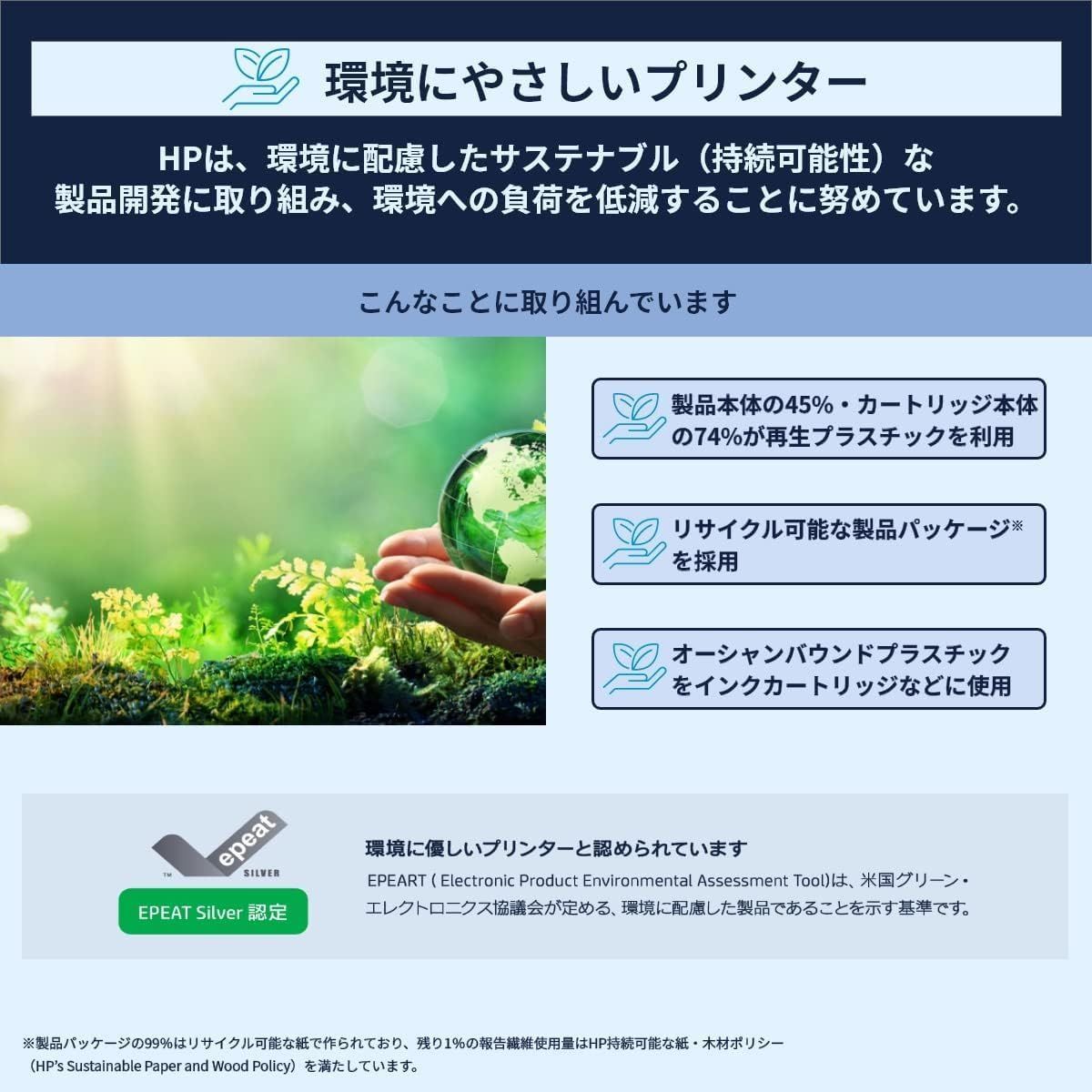 環境にやさしい、サステナブルなプリンター:製品本体の45%・カートリッジ本体の74%が再生プラスチックを利用。EPEAT Silver 認定 【対応インク】HP804・804XL(黒、カラー)