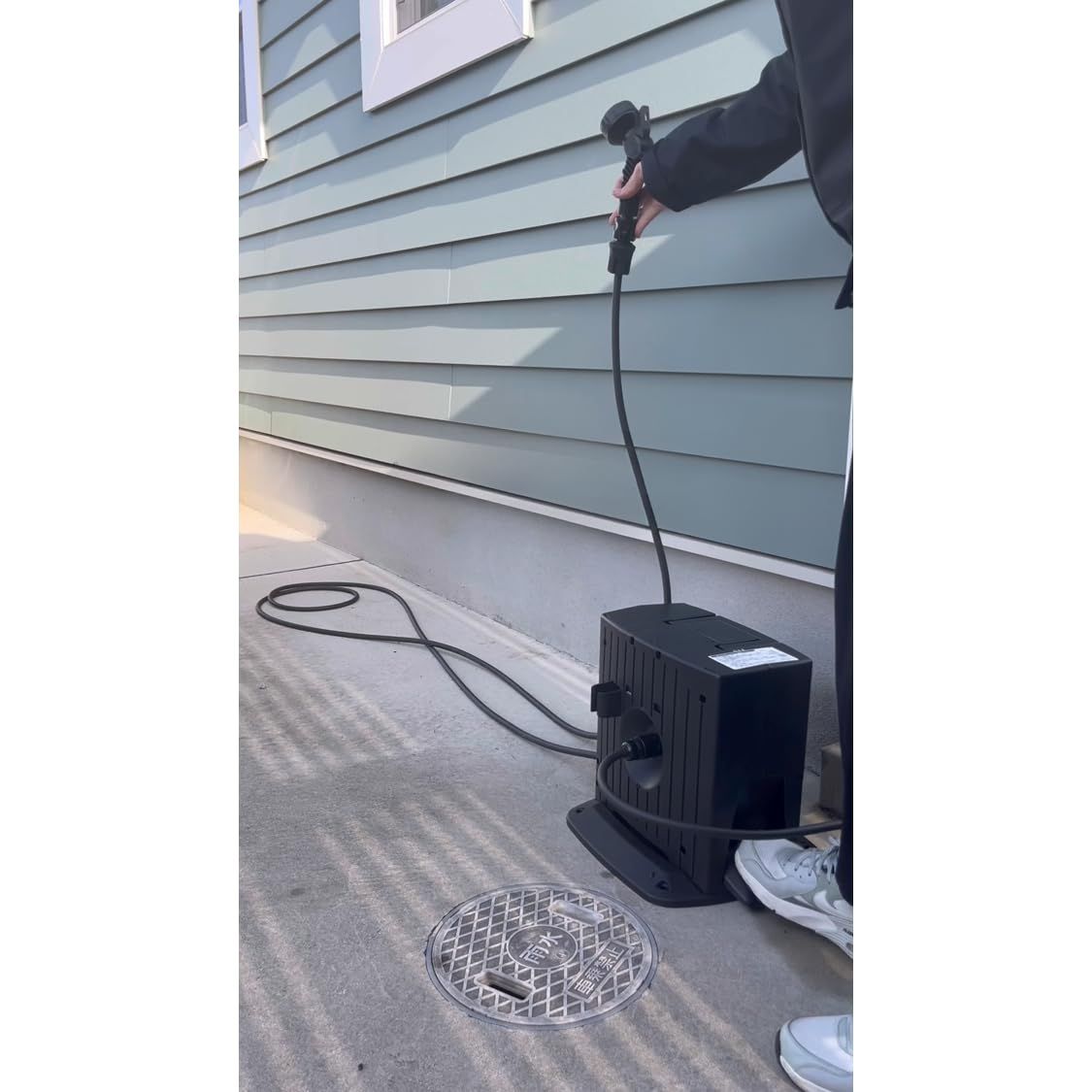 ペダルで自動巻取り本体下部にあるペダルを踏んでいただくことで、ホースを簡単に巻き取れます。