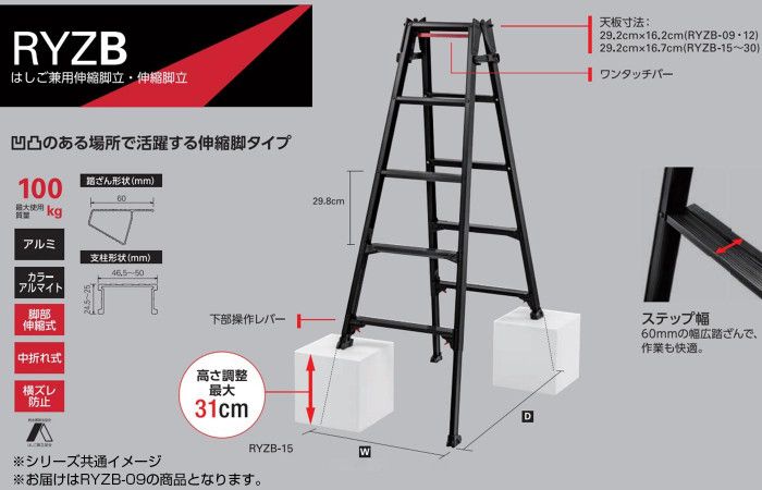 脚部伸縮兼用脚立 BLACK LABEL RYZB 09 10136