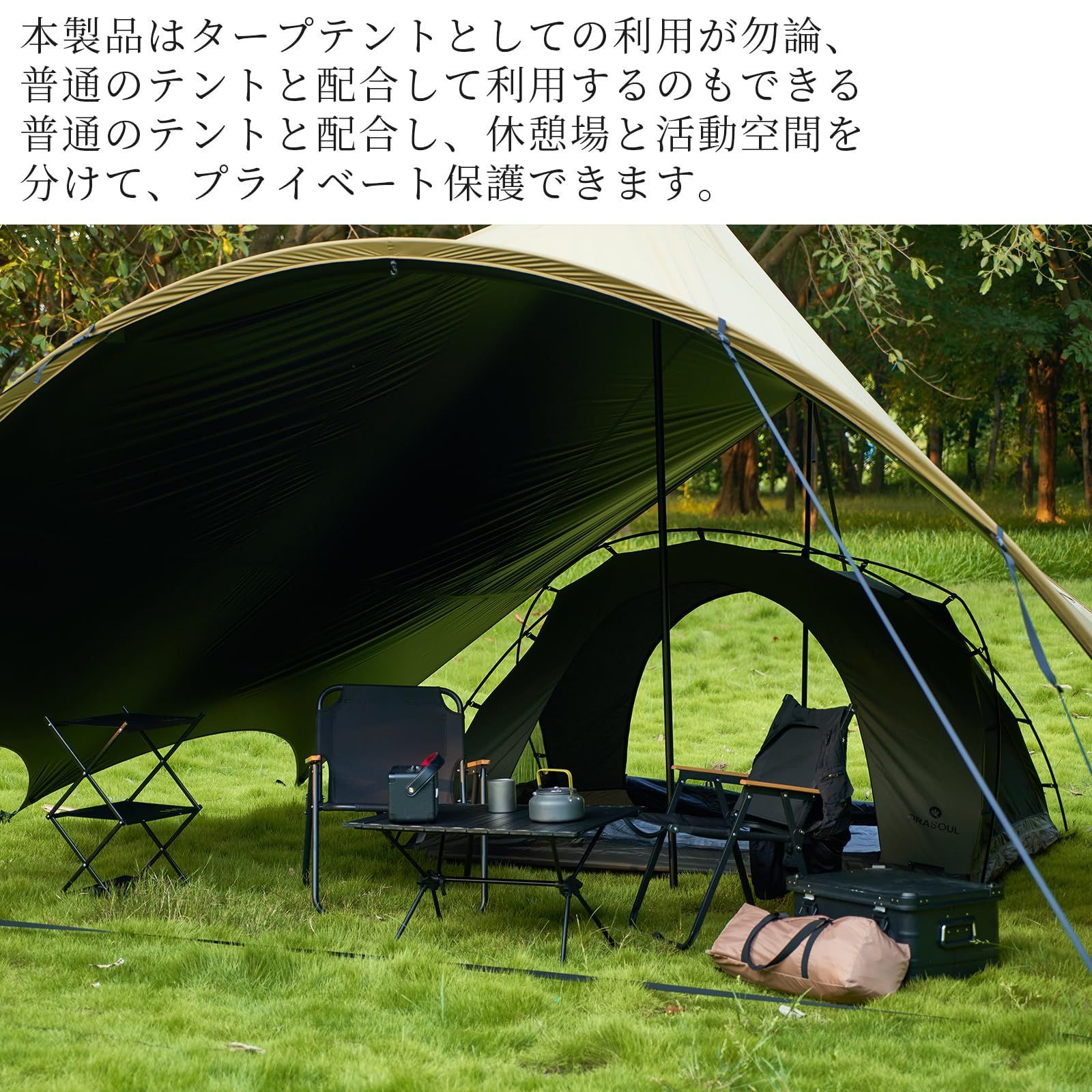 【様々なシーンで使用でき、安全に保障がある】野営場所、庭、公園、カーキャンプ、バーベキューパーティー以外に複数のテントに連結できる。友人、家族、同僚などの大規模活動にも使用できます。テント内の空間が広く、高さもあるので、二三人用にテーブルを放置して8~14人で使用しても問題ない。 *クォリティー問題や質問のあり時は遠慮なくご連絡ください。アフターサービスをご提供させていただきます、24時間内にご回答いたします。