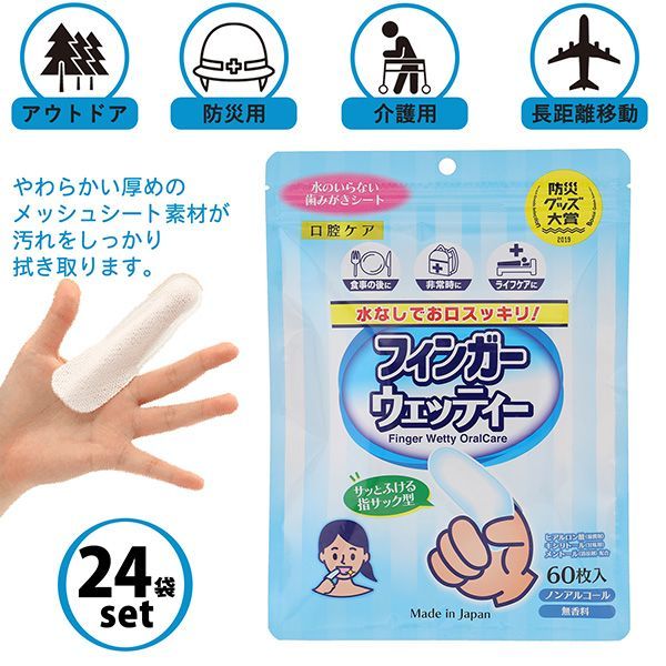 24袋セット 指サック型 歯みがきシート フィンガーウェッティ 入り 口腔ケア 歯磨きシート 口腔用ウェットティッシュ ノンアルコール 防災 介護 本田洋行