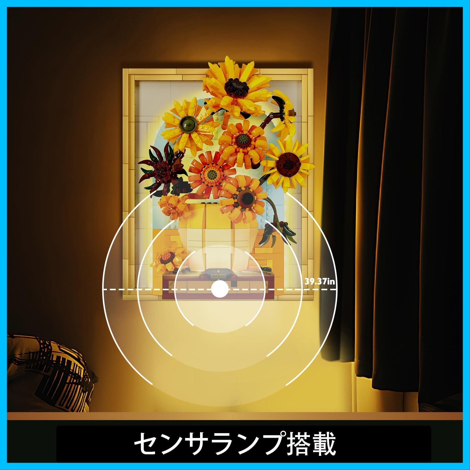 JMBricklayer 花ひまわり ブロックセット ライト付き 70004、ゴッホ 壁掛けアート 工芸品、ひまわり 模型 組み立て玩具 、植物 絵画フレーム 部屋 ホーム オフィス 室内装飾、造花の誕生日 クリスマス ギフト大人 女性たち 女の子