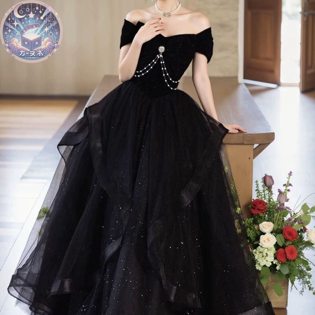 ラメ入り生地のパール付き フリルスカートのオフショル どれ