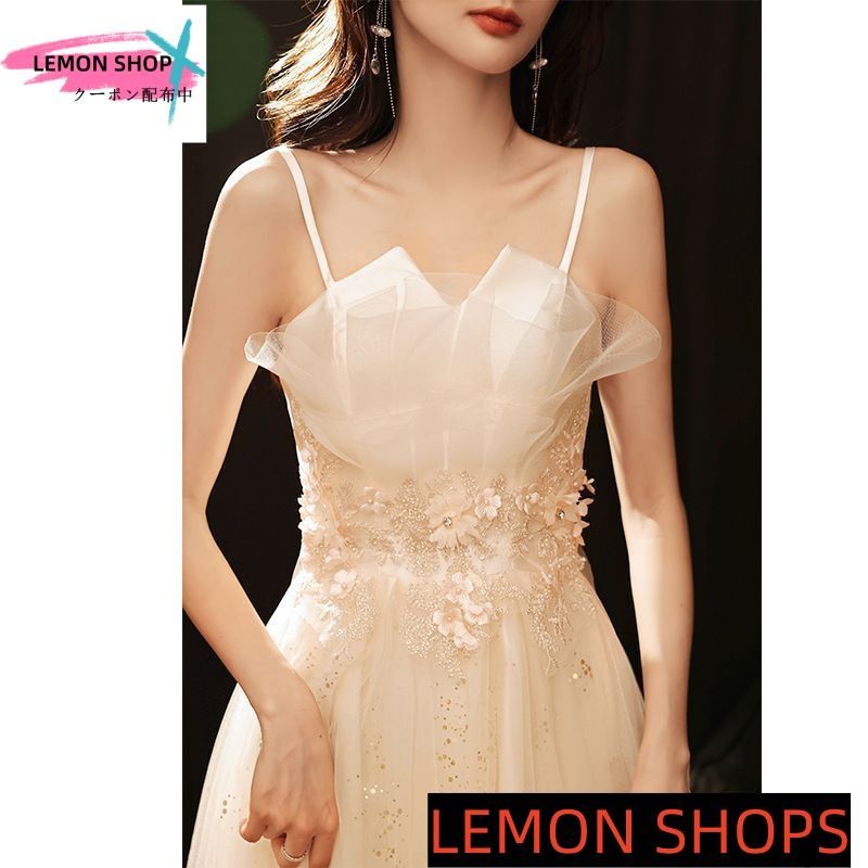 2025 ドレス ロングドレス パーティードレス シャンパン 肩ひも シフォン ウェディングドレス ウエディングドレス 結婚式 二次会 花嫁 前撮り 演奏会 発表会 LEMON