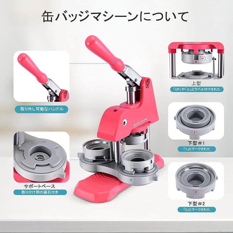 缶バッチマシーン 25 mm 32 58 磁気吸着式新型缶バッジメーカー バッジ素材付き 缶バッジ製造機 缶バッジマシーン 回転式ステージ 使用簡単 向け DIYバッジマシーン オリジナル ハンドメイドキット 手芸 ア