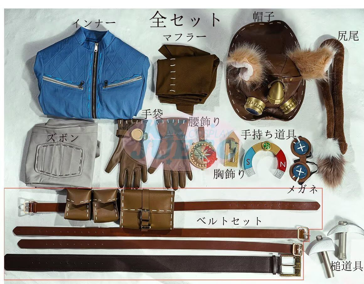 KK Juego KKCOSPLAY コスプレ衣装 第五人格 探鉱者 両面盗賊 尻尾 帽子 手持ち道具付き セット コスプレ撮影 花火大会 夏祭り イベント用