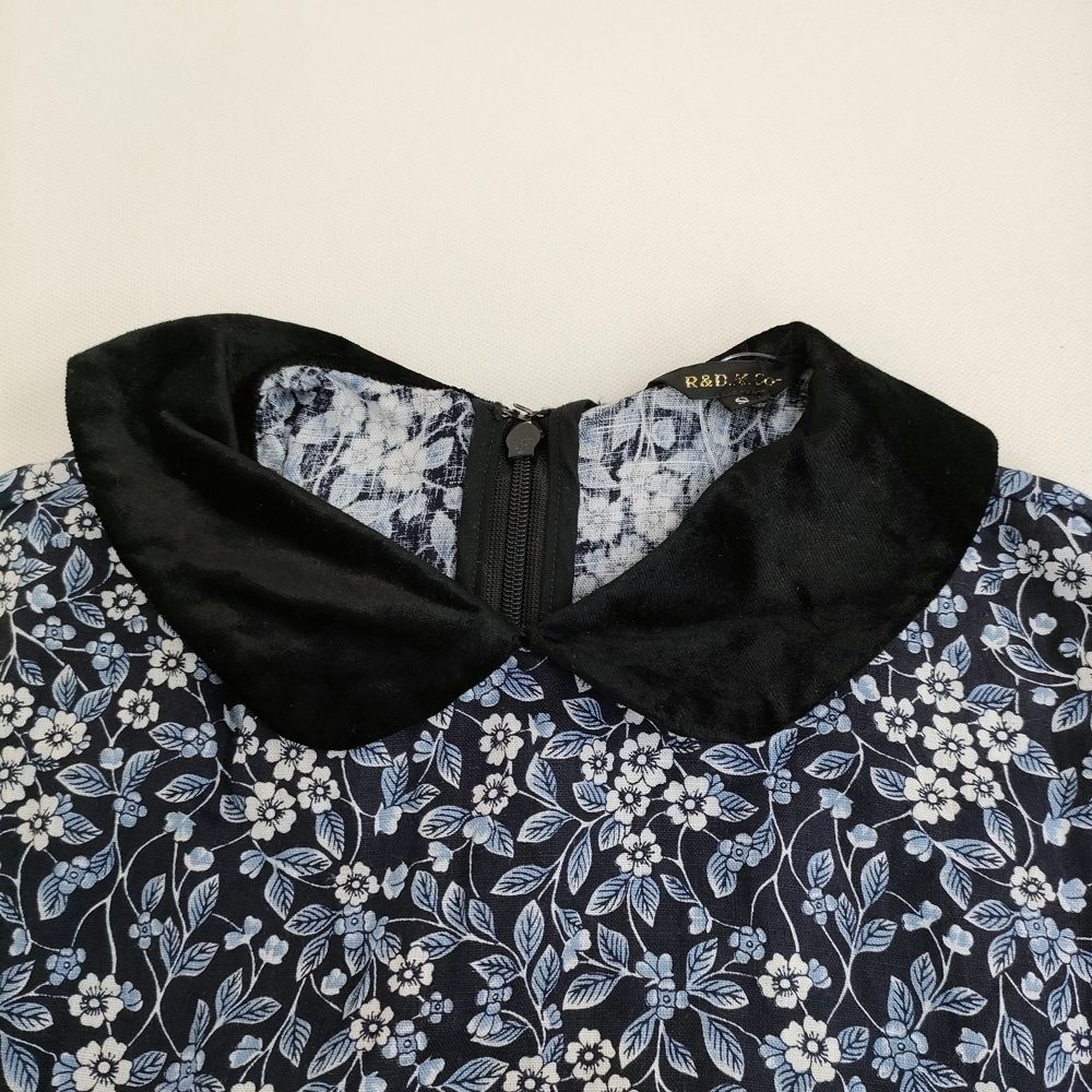 R-D.M.Co- アイリッシュ ラウンド ノースリーブブラウス S 花柄 ネイビー ホワイト レディース マンズテーラー 5-0908