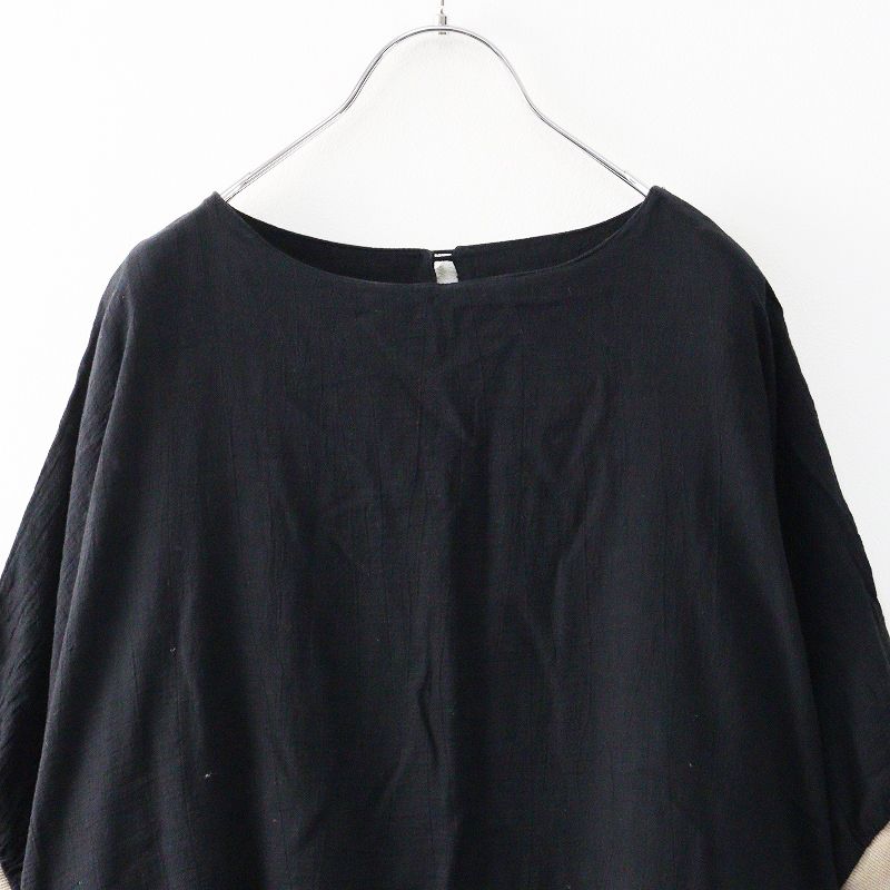 【品名】2023SS マーブルシュッド marble SUD コットンボイル 袖口リブワンピース |ブラック トップス バイカラー