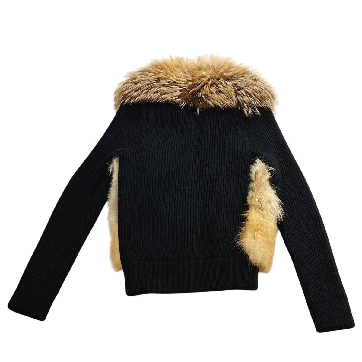 LOUIS VUITTON ルイ ヴィトン ファーニット切り替えブルゾン RW 172 B ECL FDKC 14 黒 ベージュ M レディース フォックス コヨーテ ビーバー MK