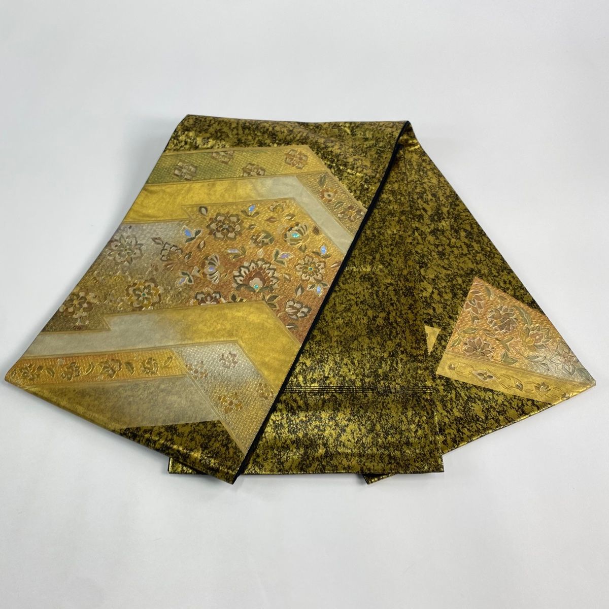 袋帯 草花 螺鈿 金彩 金色 お太鼓柄 正絹