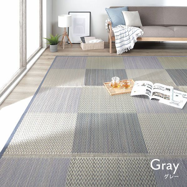 い草 花ござ ラグ マット 〔 4.5畳 格子柄 市松柄 グレー 本間4.5畳 約 裏貼りなし 〕 抗菌 防臭 調湿