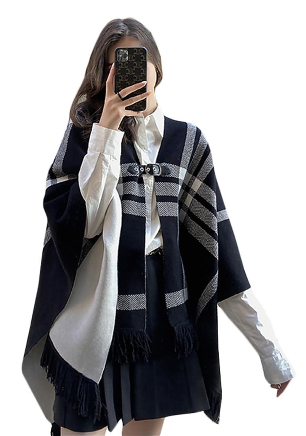 [TAITENG] 袖無しストール 大判 カーディガン ショール 秋冬 レディース ポンチョストール コーディガン 羽織 ショール ポンチョ フリンジ 付き 大判 春 秋 冬 マフラー ストール風 ポンチョ チェック柄 着痩せ 防風 防寒