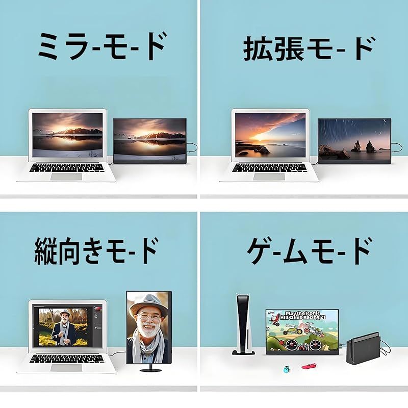 [多様な接続オプション]:2つのType-Cポ-ト、1つのMini HDMIポ-ト、そして3.5mmオ-ディオジャックを搭載したこのポ-タプルモニタ-は、ノ-トパソコンやゲ-ム機、その他のデバイスに柔軟に接続できます。