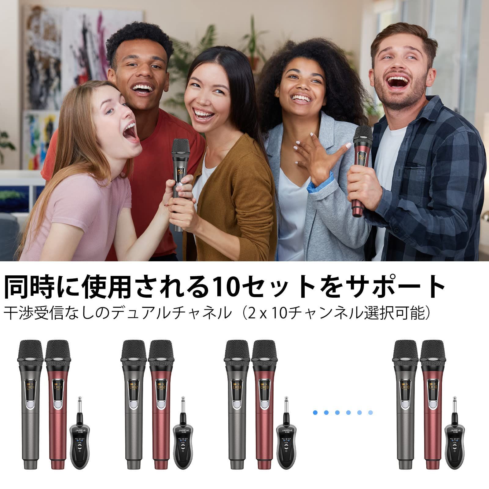 JAMELO ワイヤレスマイク カラオケマイク ダイナミックマイク 2本セット 10チャンネル 長時間使用可能 6.35mmレシーバー付き 無線マイク スピーチ 会議用 ホームカラオケ パーティーに適用 日本語取扱書付き