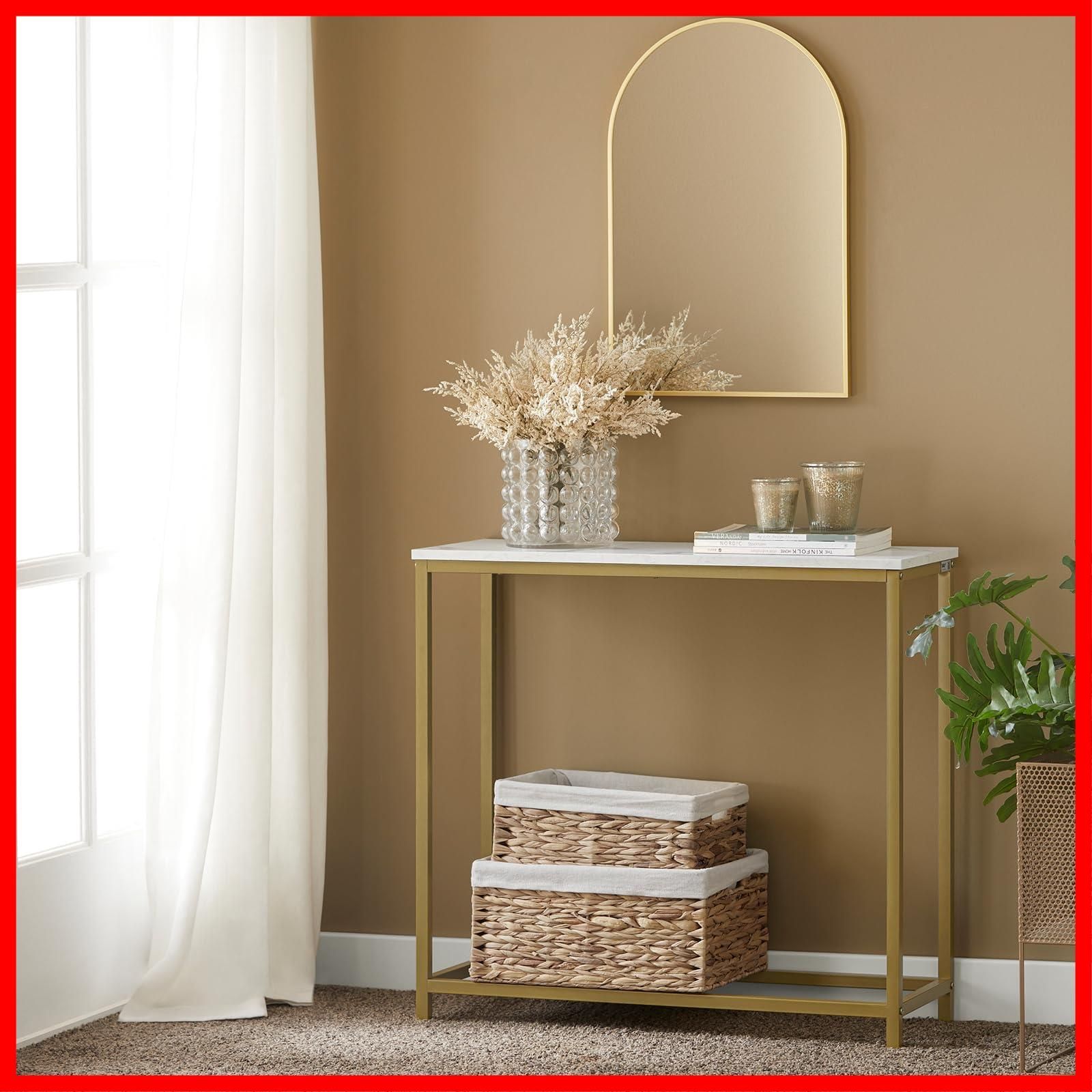 ?【おしゃれ大理石調テーブル】金属色と大理石感のデザイン、スリムなサイズ。玄関口や、ソファーサイドに置くと、部屋をおしゃれに変わります。寝室、リビング、玄関、キッチンどの場所でも活用できます。