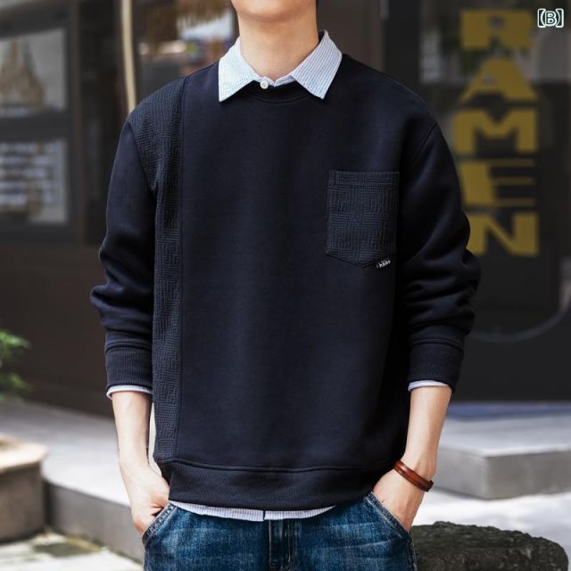 4 XL メンズ 服 シンプル ファッション オシャレ 大人 かっこいい 大きいサイズ ストリート 紳士服 アメリカン ラウンドネック セーター 秋ヘビー カジュアル 長袖 ポケット