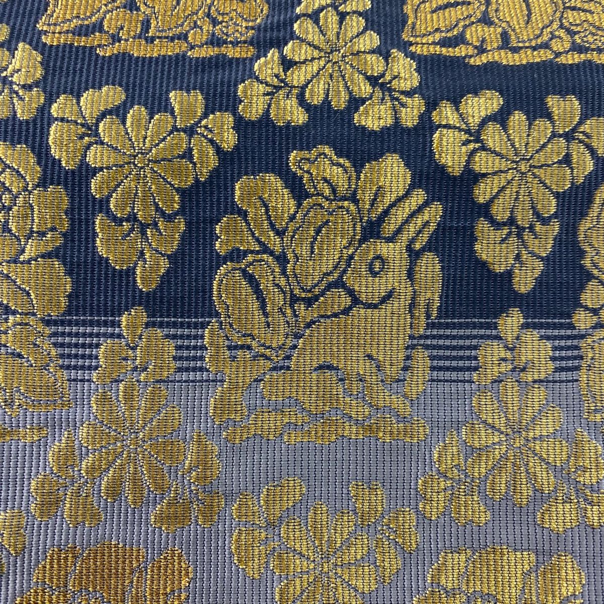 付け帯 作り帯 花兎 牡丹 金糸 紺色 正絹