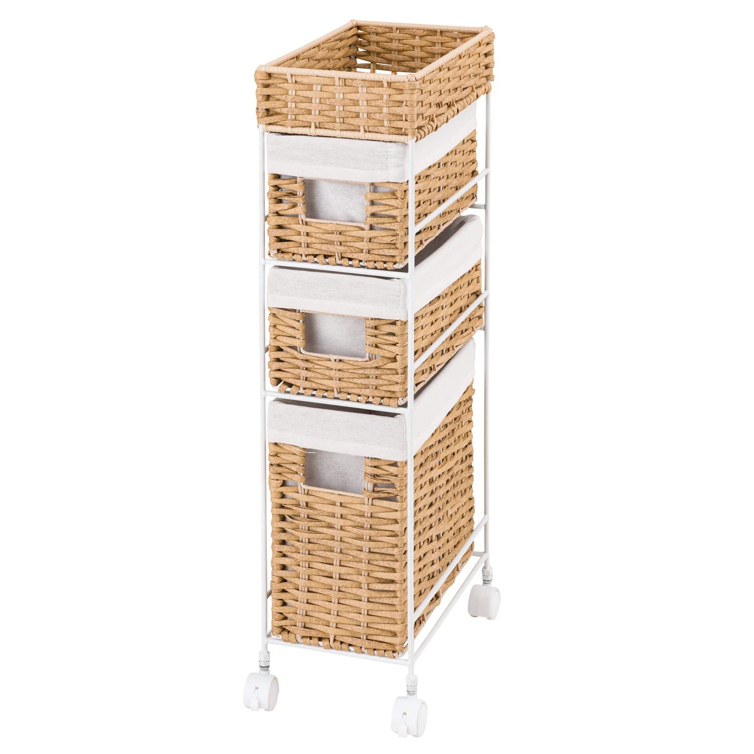 インナーカバー付き 脱衣所 おしゃれ 洗面所 幅20 最大23 ×奥行35×高さ82 cm タオル キャスター付き 洗剤 隙間収納 収納家具 スリム 薄型 取り外せる籠 3段 深型 ラタン風ランドリーチェスト カゴ付き ドウシシャ AMC 20-3 FI