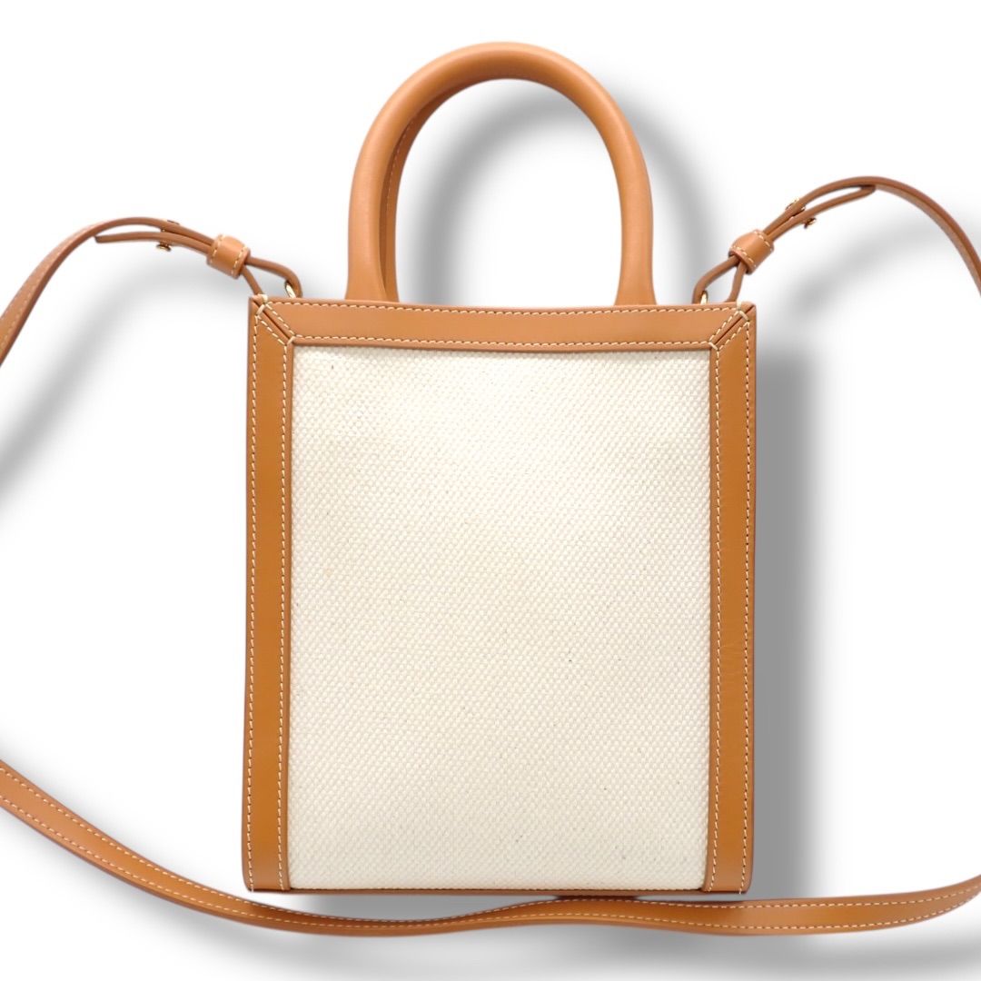 セリーヌ CELINE ミニバーティカルカバ ショルダーバッグ ハンドバッグ トップハンドル 2 way キャンバス レザー ベージュ ブラウン ロゴ 4400