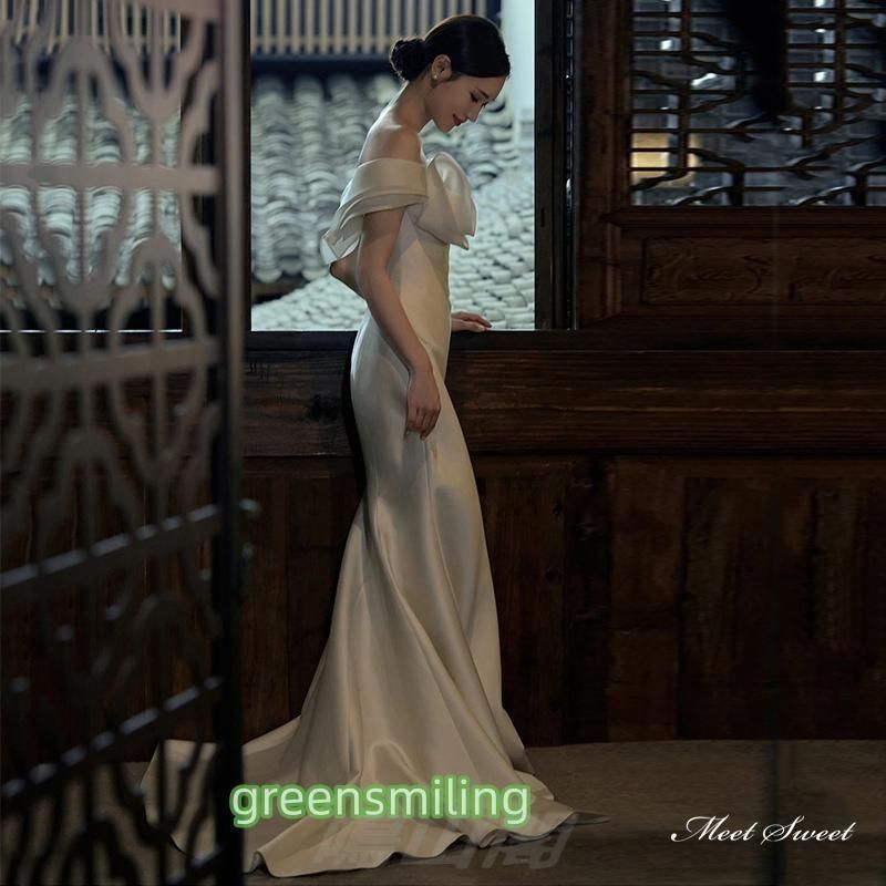 ウェディングドレス ウエディングドレス ロングドレス 二次会 結婚式 前撮り ブライダル 花嫁 オフショルダー ファスナー サテン トレーン WP数量限定価格926