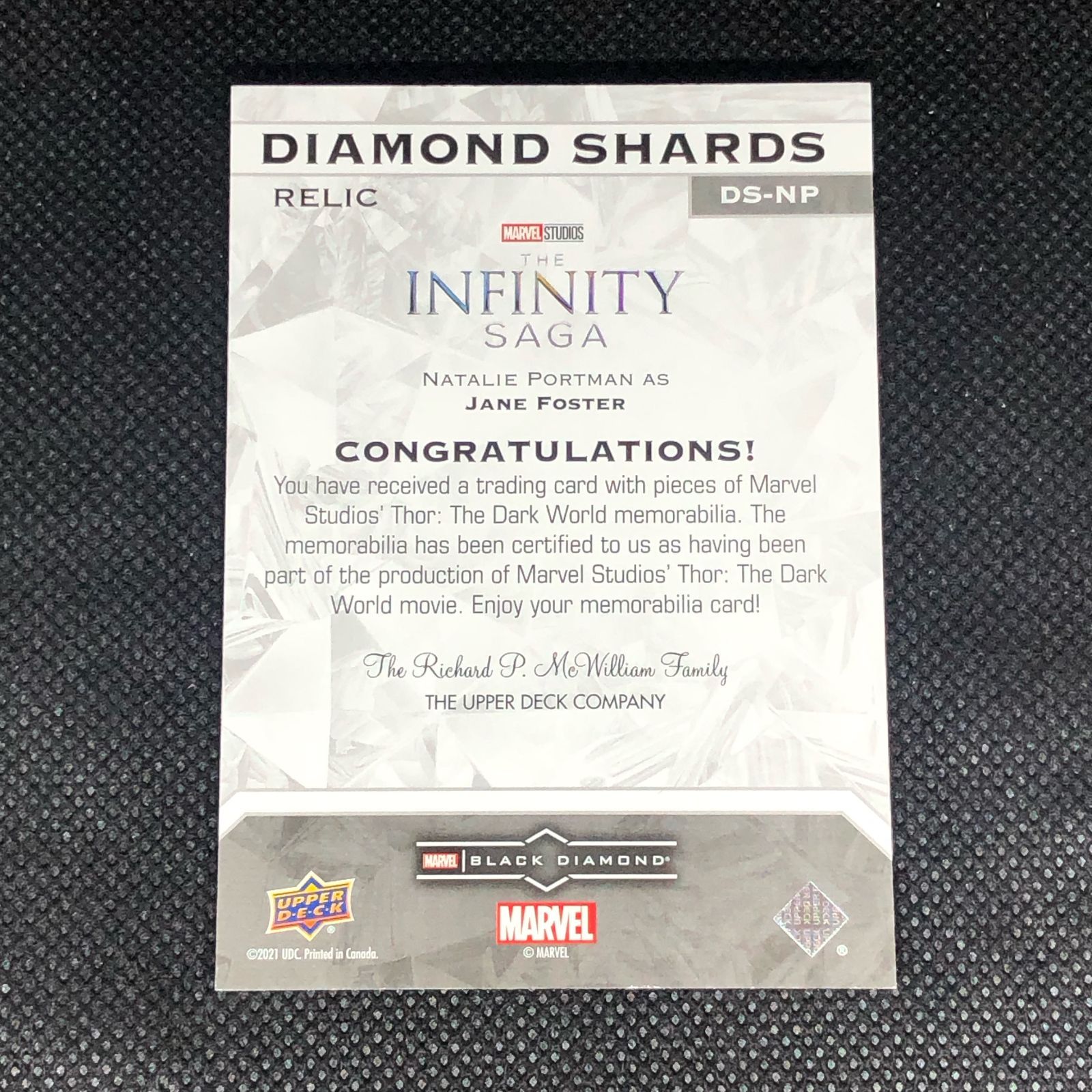 Natalie Portman ナタリーポートマン 2021 Upper Deck Marvel Black Diamond Shards 衣装カード DS-NP