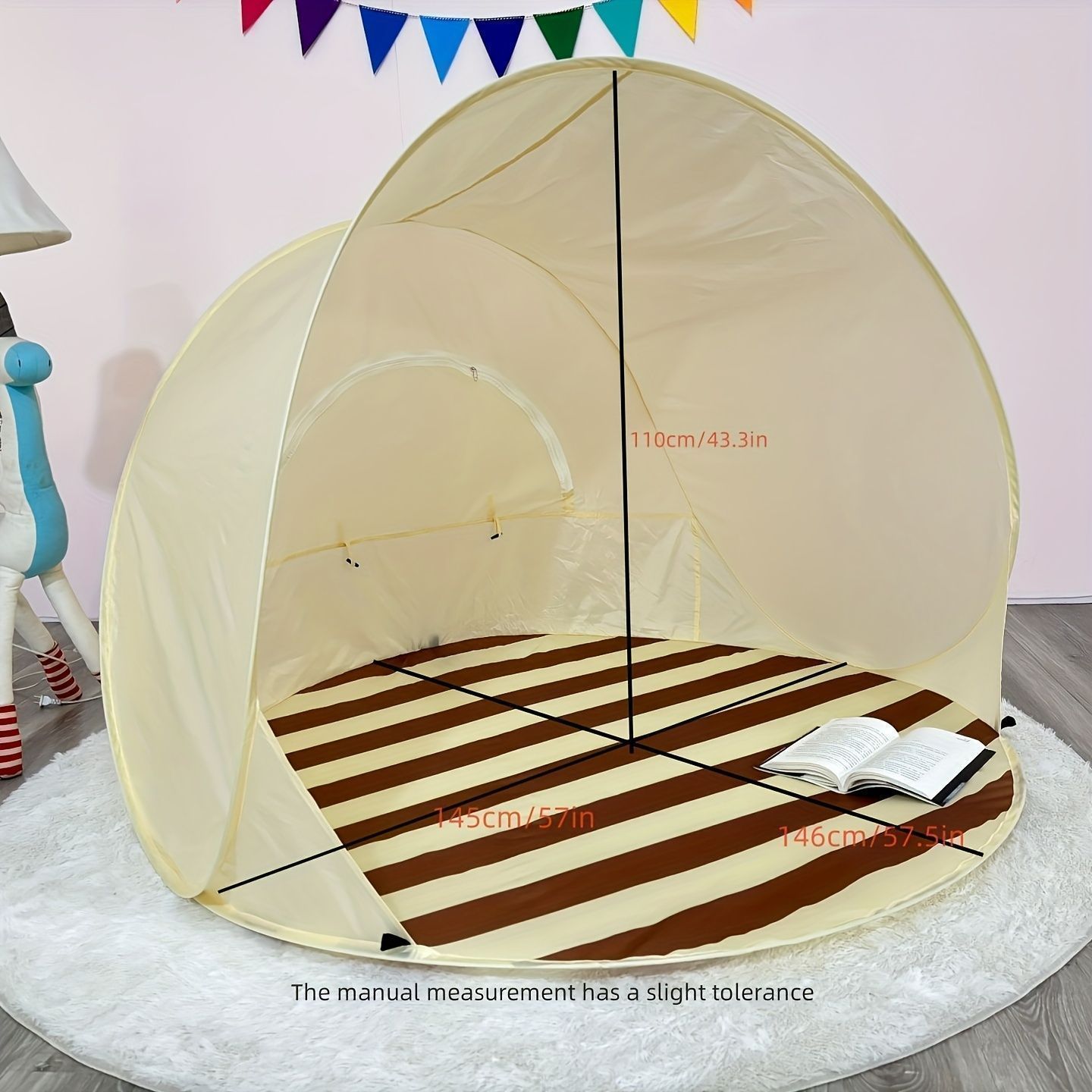 陽射しから守り、プライベートな空間を提供するポータブルテント。休憩やお昼寝に最適なシェルターです。