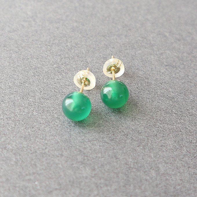 K 18 グリーンオニキス ラウンド 約5-5.5 mm 18金スケルトンキャッチ付き スタッドピアス 直結タイプ 18金