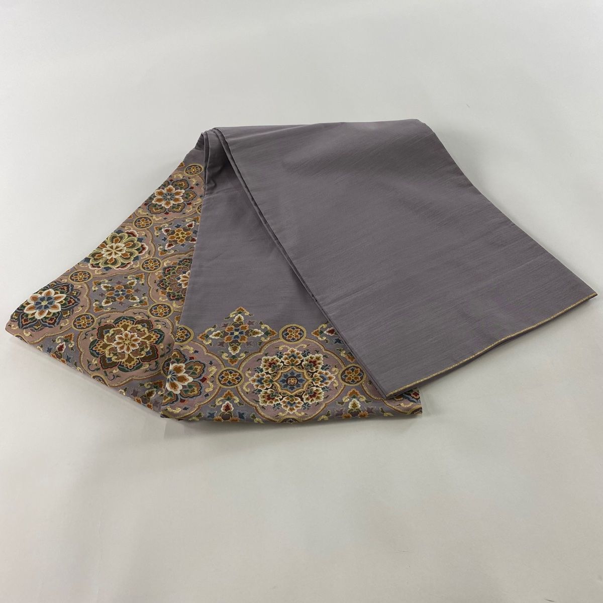 袋帯 華文 草花 金銀糸 灰紫 お太鼓柄 正絹