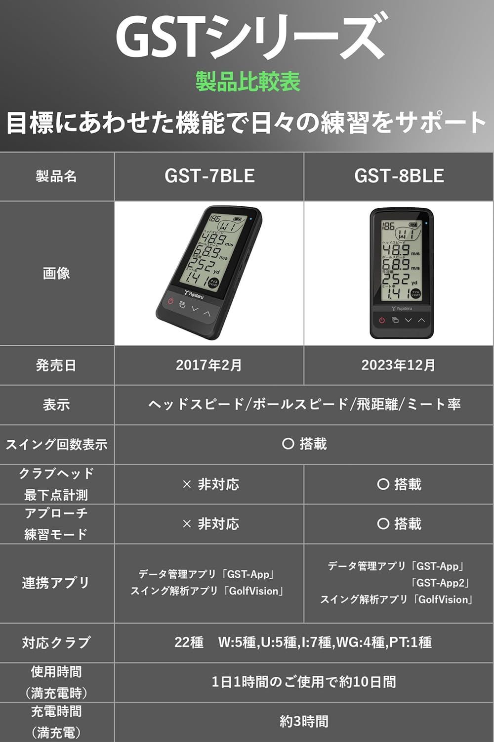 ユピテル スイング練習機 両利き Yupiteru GOLF GST-7 BLE ユニセックス 使用 時間 満充電時約10時間 本体サイズ 124 mm D ×60 W ×18 H ブラック