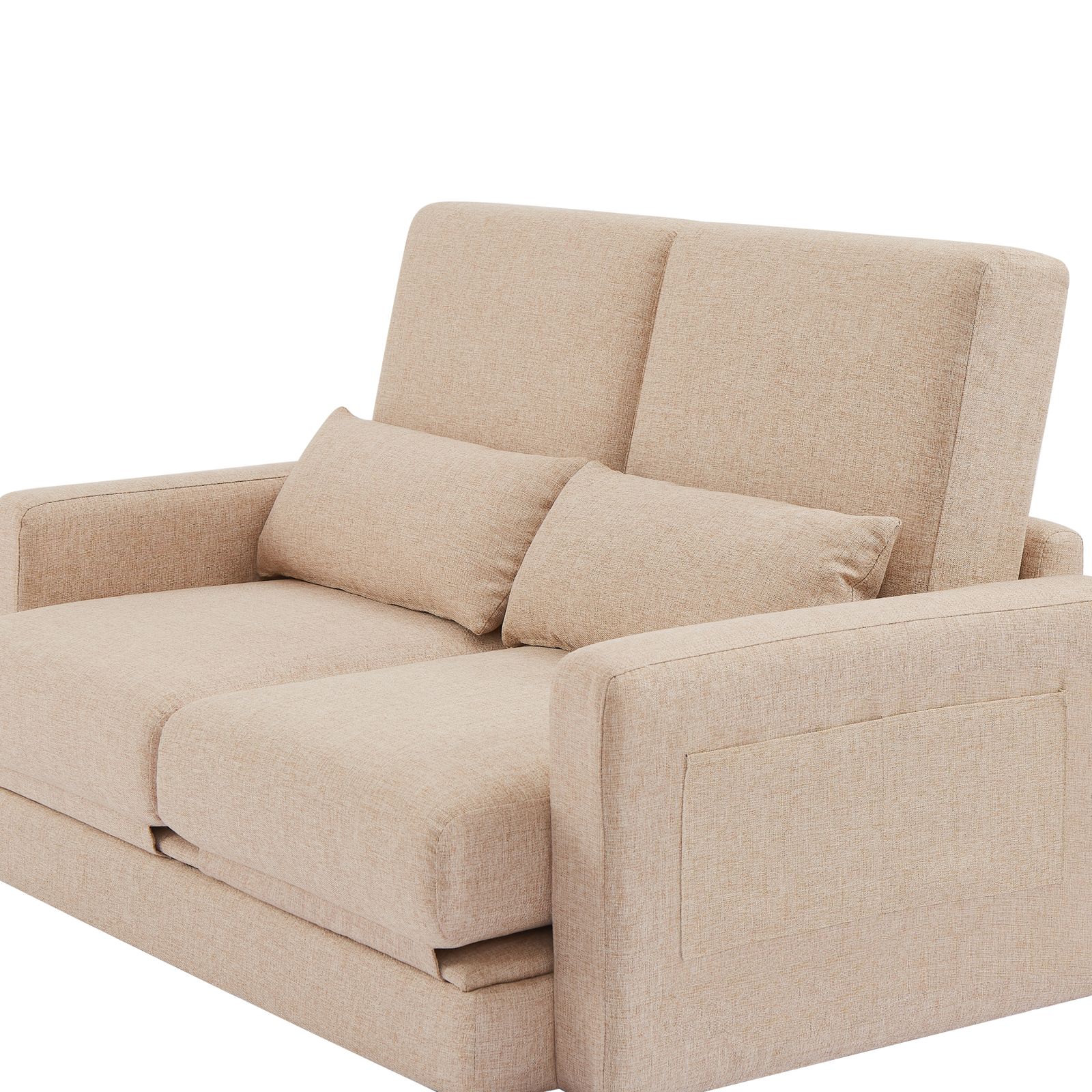 このソファは 2 人が座れるもので、収納機能を備えており、織物の生地で作られています。両側には思いやりのある肘掛けが設けられており、使いやすくて便利です。