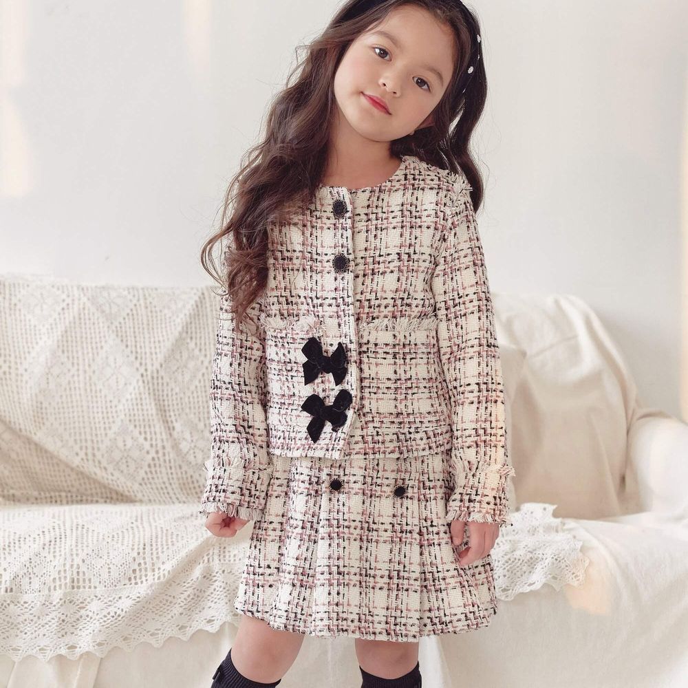 リッチな印象が特徴の暖かみのあるツイード素材のスーツセットアップは、卒園入学シーズンにはぜひおすすめです♪上下セットでスーツの代わりにフォーマルシーズンにクラシカルに対応。