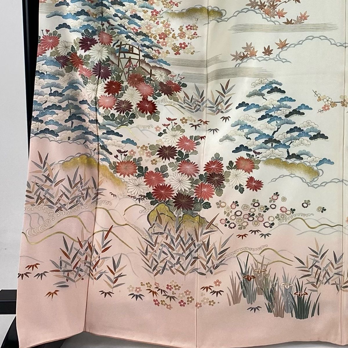 訪問着 身丈165.5 cm 裄丈67 M 袷 松竹梅 菊 刺繍 金彩 クリーム 正絹 秀品