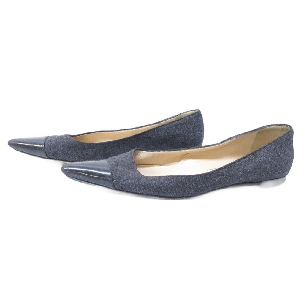 マノロブラニク MANOLO BLAHNIK フラットパンプス ポインテッドトゥ エナメル切替 グレー 37 約24.5 cm IBO 79