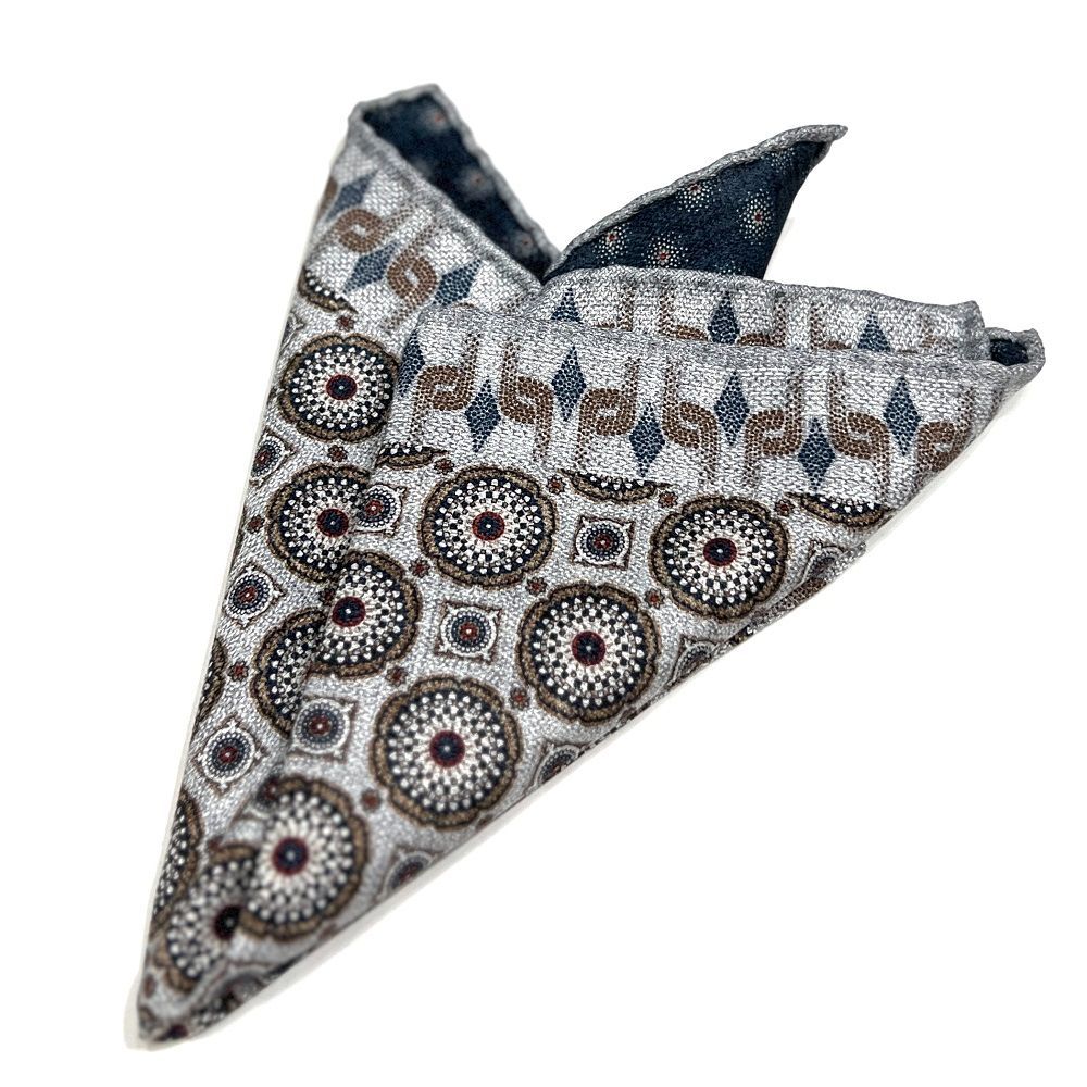 ROSI COLLECTION ロージ ポケットチーフ 小紋柄 裏 花柄 ダブルフェイス シルク ハンドメイド イタリア製