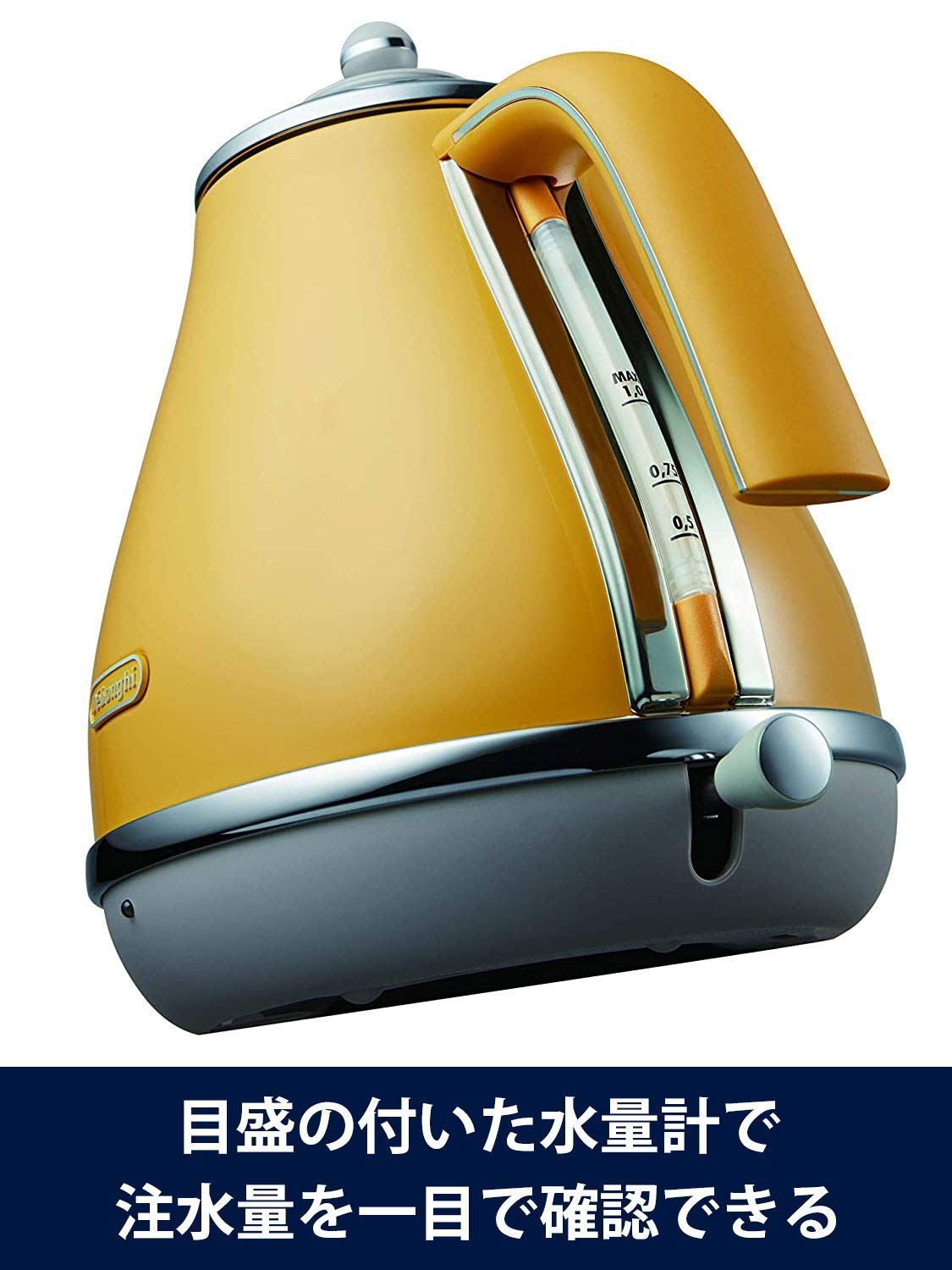 De Longhi デロンギ 電気ケトル アイコナ キャピタルズ -Y ステンレス 1.0 L 見やすい水量計 異物混入防止フィルタ 空だき防止機能 簡単お手入れ ニューヨークイエロー デロンギファミリー登録で3年