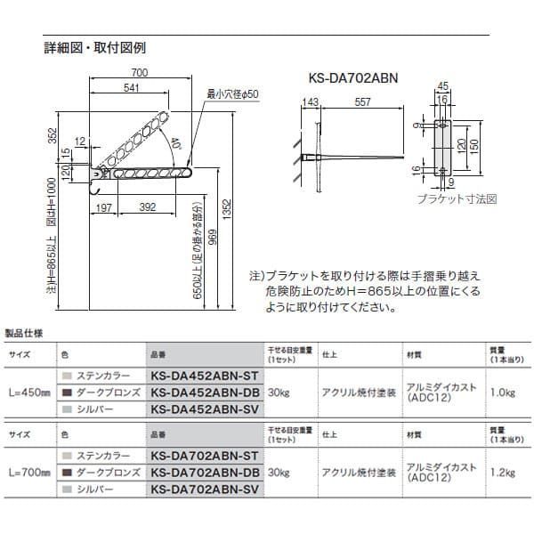 KS- -DB Nasta キョーワナスタ 屋外物干 折りたたみ収納タイプ L 700 mm ダークブロンズ 2本入り