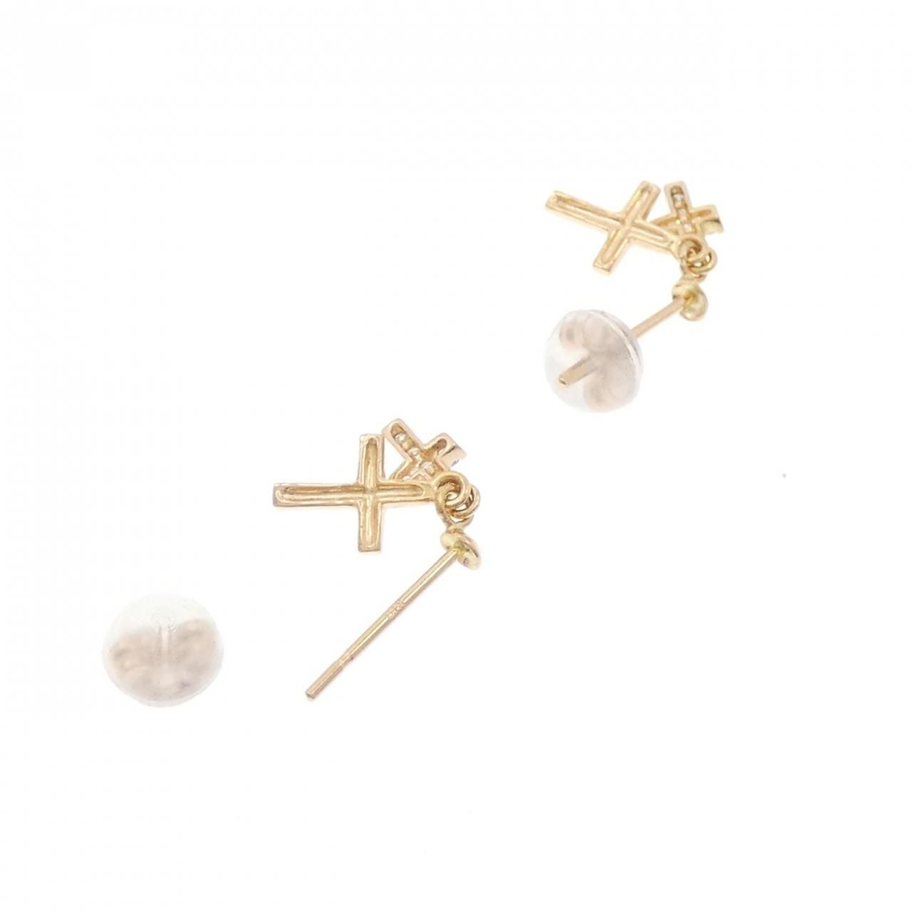 K 18 PG クロス ダイヤモンド ピアス