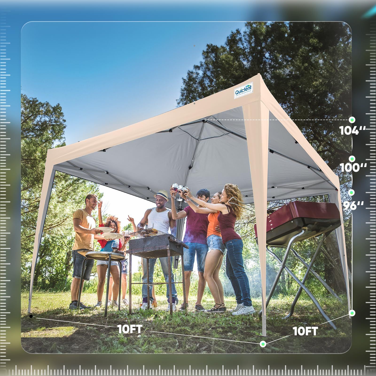 Quictent ワンタッチ タープテント3段階調節 UVカット 耐水 スチール キャンプ アウトドア 耐水 テント キャンプ用品 ワンタッチテント タープ収納ケース (ベージュ, 2.5*2.5M)