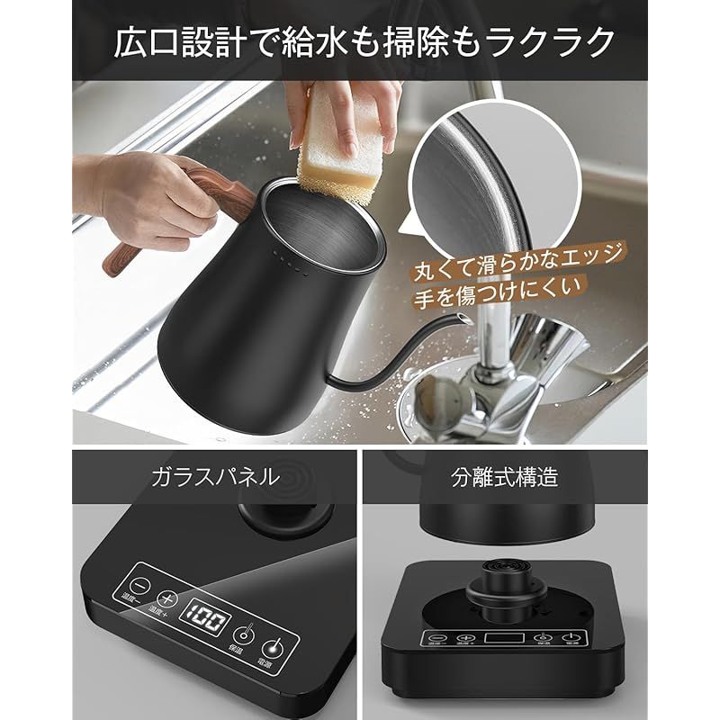 Aliliy 電気ケトル コーヒー 1℃単位温度調整 0.8L 小型 細口 ドリップポット 4時間保温機能 電気ポット コーヒー ケトル 1000W 空焚き防止機能 自動電源オフ カフェケトル 湯沸かし 一人暮らし 二人暮らし ステンレス クリスマス/新年/お祝い/贈り物 プレゼント ブラック 木目調 PSE認証済み
