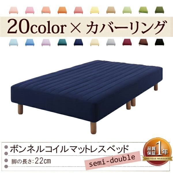 色 寝心地が選べる! カバーリングボンネルコイルマットレスベッド 脚22 cm セミダブル ミッドナイトブルー