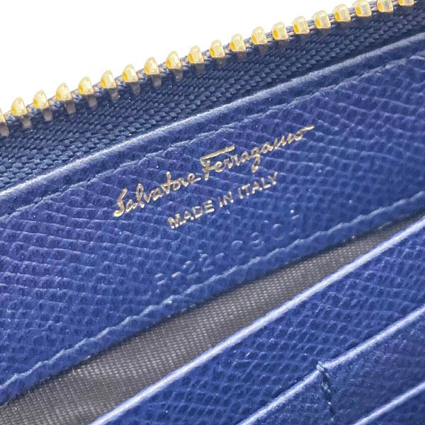 サルヴァトーレ フェラガモ 長財布 ヴァラ L字ファスナー長財布 カーフ レザー 革 ネイビー 紺 22 C 907 Salvatore Ferragamo リボン 財布 ロングウォレット ウォレット サイフ レディース 女性