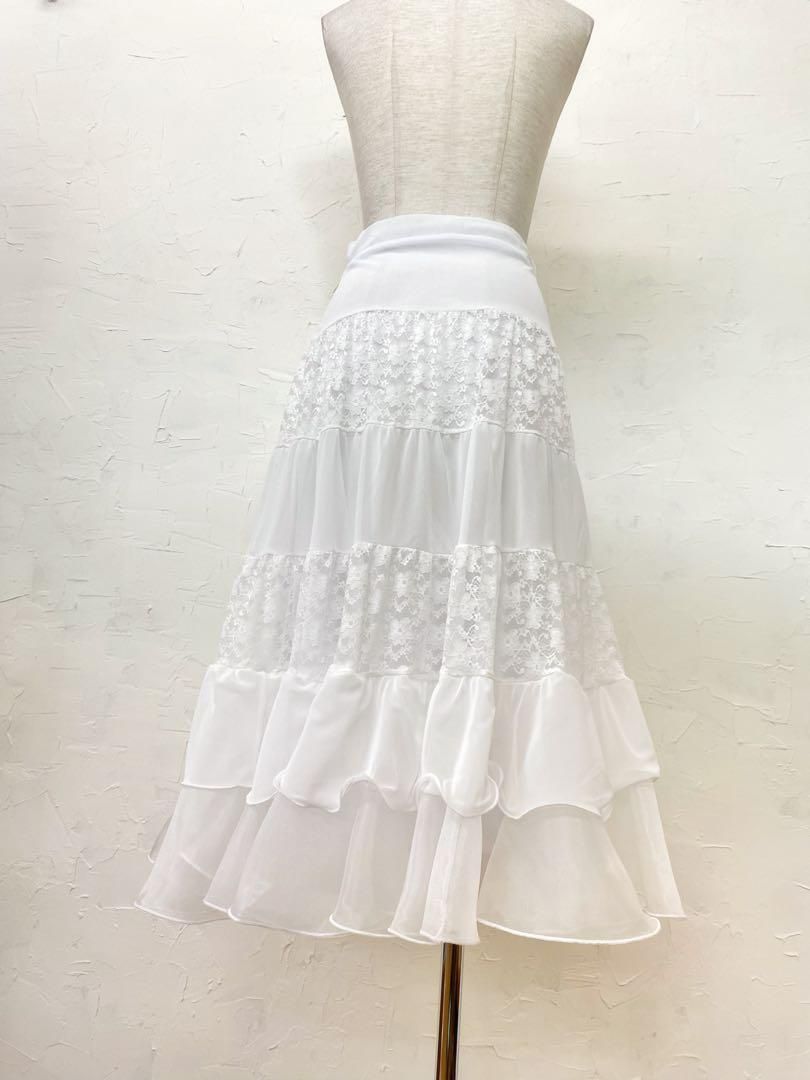 ふわふわ レースがかわいい 白 ティアードスカート m060
