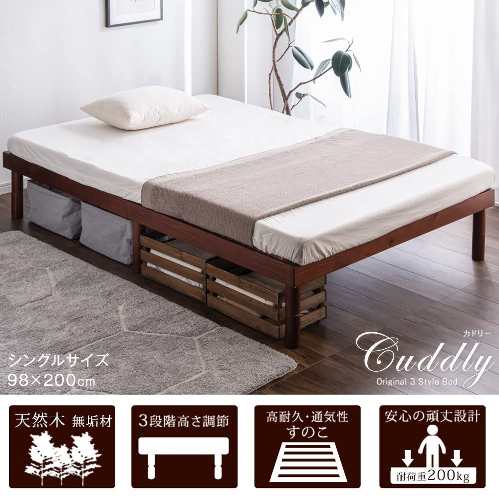 タンスのゲン ベッド シングル すのこベッド 北欧パイン 3段階高さ調節 耐荷重200 kg 天然木 ベッドフレーム ヘッドレス シングルベッド 80446