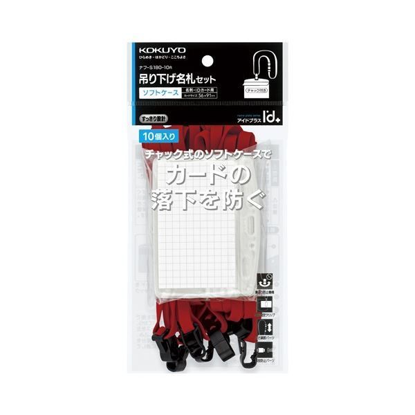 まとめ コクヨ 吊下げ名札セット ソフトケース チャック式 アイドプラス 名刺 IDカード用 赤 ナフ-S 180-10 R ×