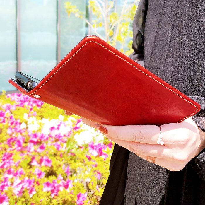 イタリア 本革 ミズーリベリー 手帳型ケース(内側:黒TPU ケース)