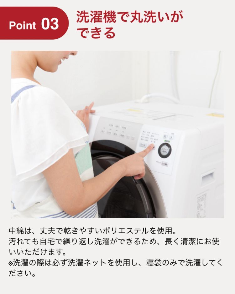洗濯機での丸洗いにも対応したマミー型のスリーピングバッグです。